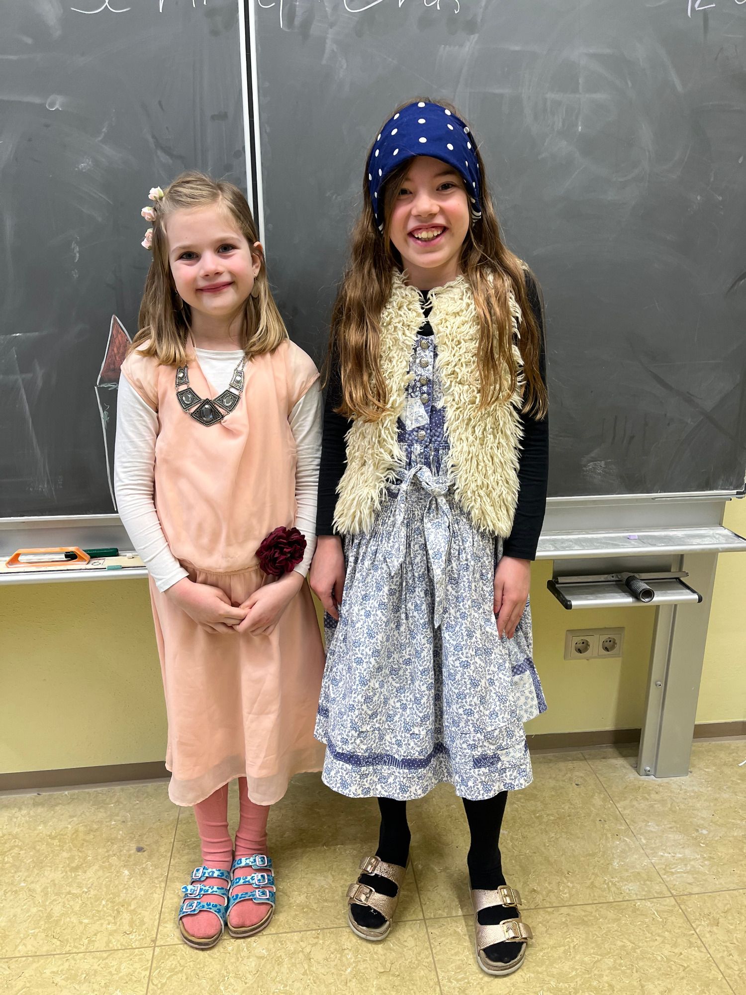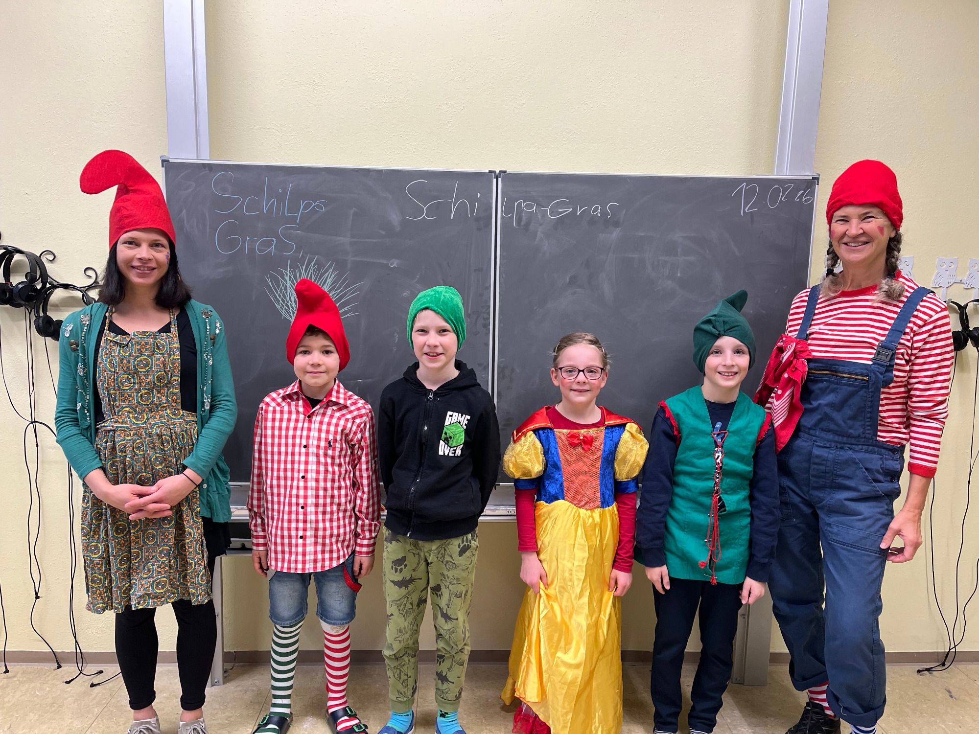Unter dem Motto "Märchen - Verkleide dich als deine Lieblingsmärchenfigur!" fand die diesjährige Schulfastnacht am "Schmotzigen Donnerstag" statt. Mit dabei waren Tierfiguren, wie Wolf, Kater und Drache, sowie menschliche Figuren, wie Prinzessinnen, Goldmarie, Jäger und Gretel und außerdem Fantasiefiguren wie Froschkönig, Meerjungfrauen, Zauberer und noch Viele mehr. Das Warten auf die Befreiung verging mit "Stopp-Tanz, Reise nach Jerusalem, Fotoshooting und Polonaise", bis endlich die Narrenzunft mit all ihren Figuren, die Musikkapelle, sowie die Frauengruppe und Familien der Schulkinder bei uns eintrafen. Nach launigen Sprüchen von "Präsi" und Schulleiterin stellten die Erst- und ZweitklässlerInnen ihr Zwergenlied vor, die Dritt- und ViertklässlerInnen "schüttelten" zum Frau-Holle-Rap die Kissen.